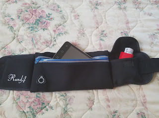 Here is a picture of the running belt holding my cell phone and my inhaler. There's still plenty of room to add money, pen and paper, chapstick, car keys, etc.